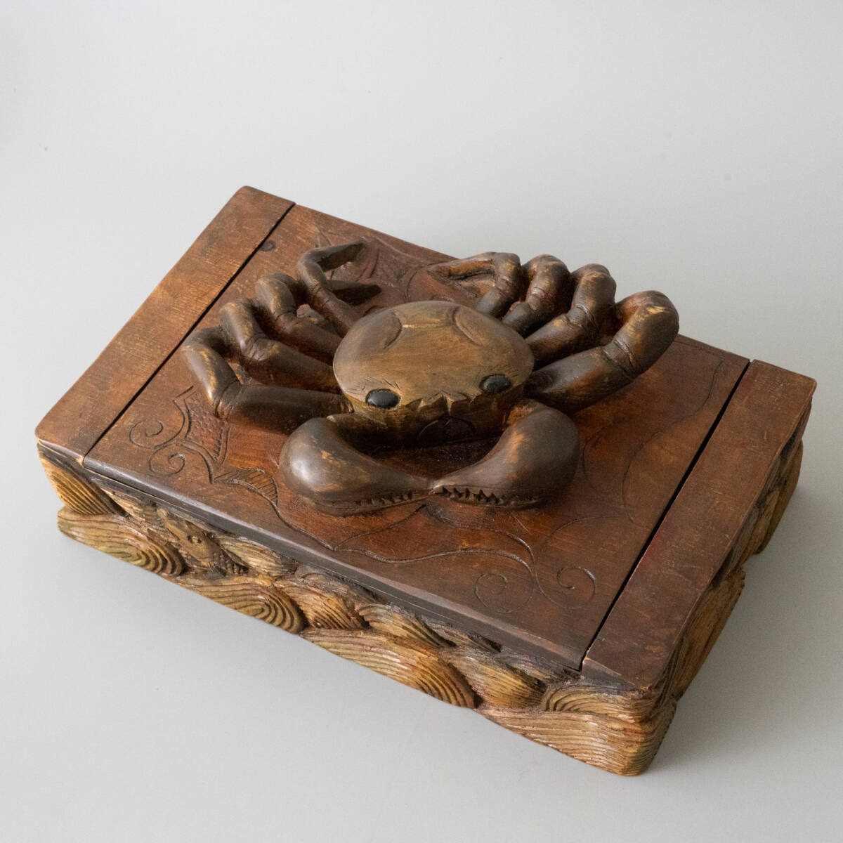 - アイヌ模様 蟹 小物入れ 木箱 木製彫刻 司峰 置物 オブジェ 飾り 古道具 民芸 骨董 アンティーク