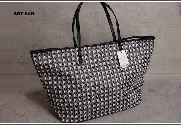 - 新品 アルチザン メン/ARTISAN MEN ブロック柄 コットン キャンバスPVC トートバッグ 白黒紺薄茶 定価2.5万円/59XY02