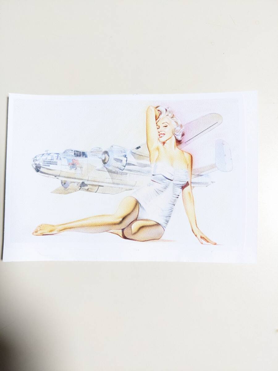 - M004【~20%OFF・1枚限・約113㎜x77mm四角 爆撃機・戦闘機 米軍】ピンナップガール★ミリタリーガールステッカー・軍・アーミー