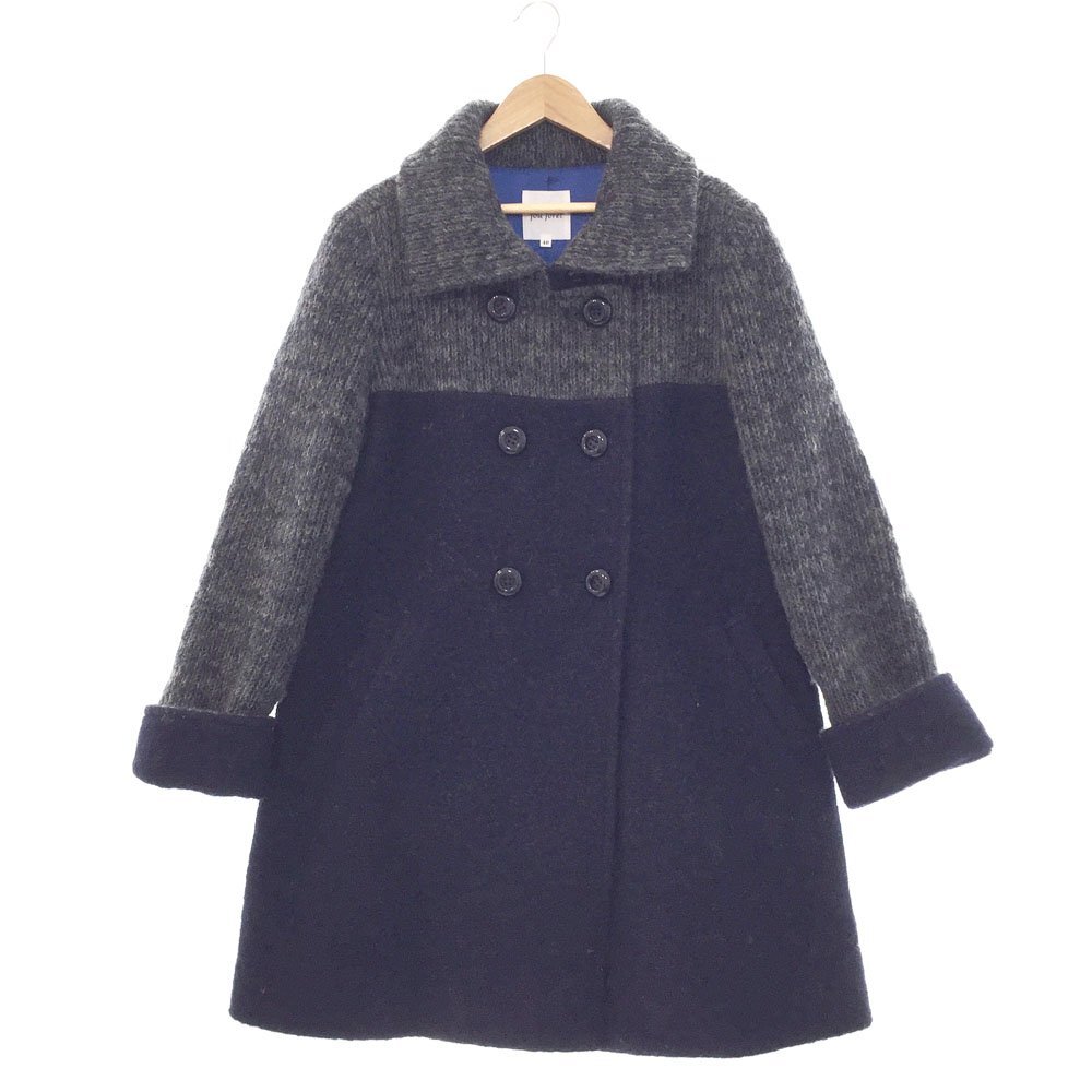 > ★fou foret フーフォレー 長袖 ニットコート レディース サイズ40 グレー×ネイビー アウター ウール バイカラー 131-045042 2BB/42552