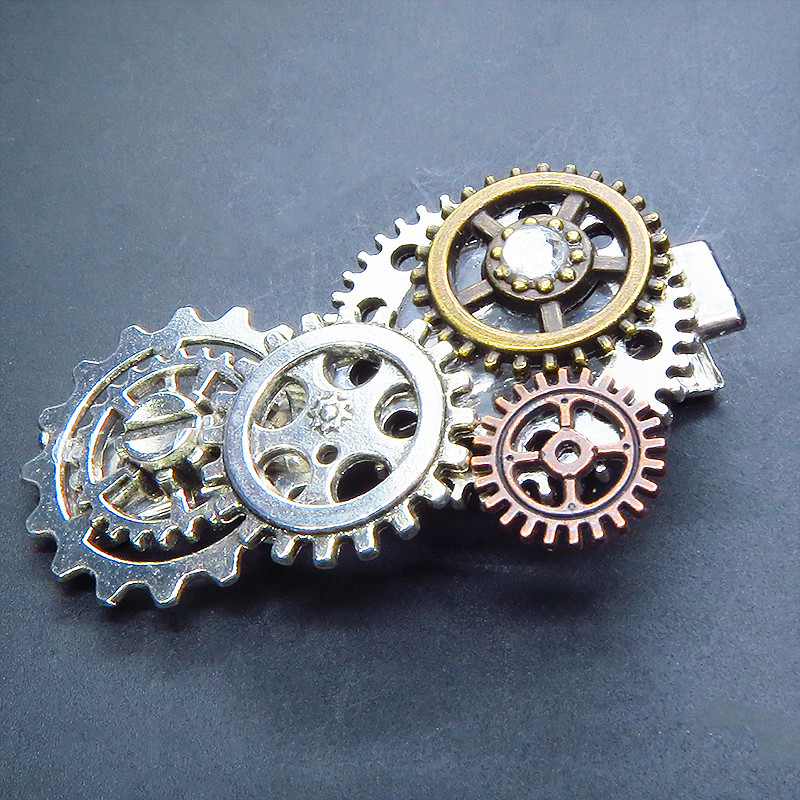 - アンティークシルバー 歯車を組合せたスチームパンク風ヘアクリップ 髪飾り レジン