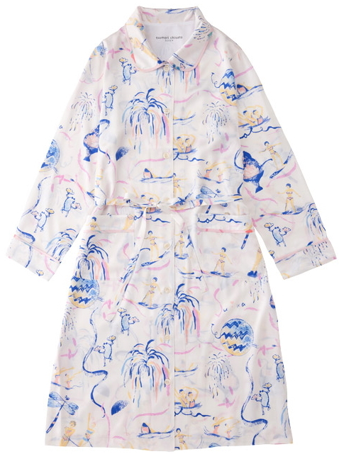 > ツモリチサト tsumori chisato★ワコール★シルクサテン パジャマ ワンピース ネグリジェ★Lサイズ★夏の海★絹100%素材★アイボリー/IV