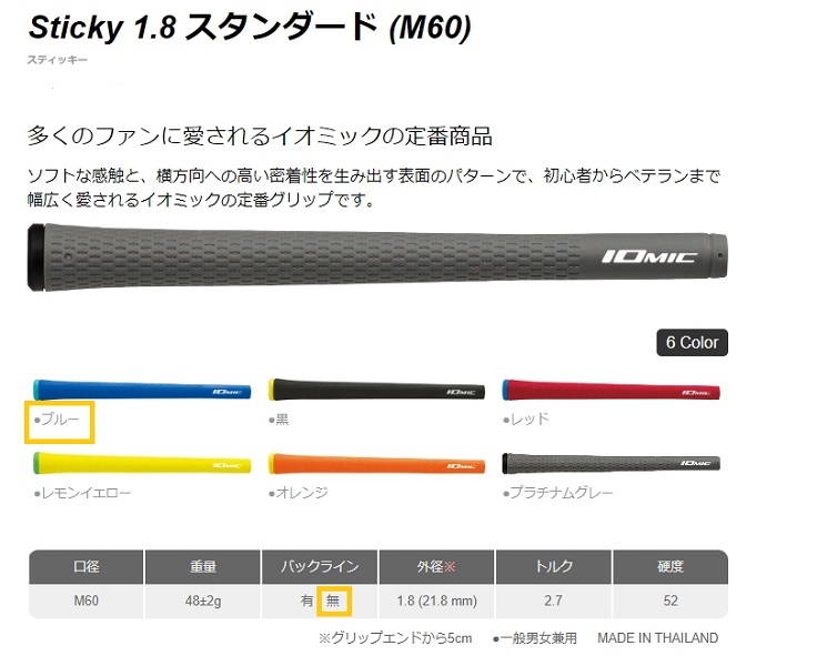- イオミック グリップ Sticky 1.8 ブルー バックライン無し(新品、未使用)(即納)