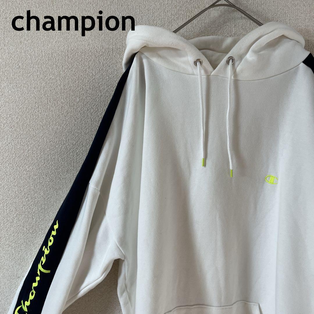 - Champion スウェットパーカー ネオンイエロー サイドライン LメンズA3