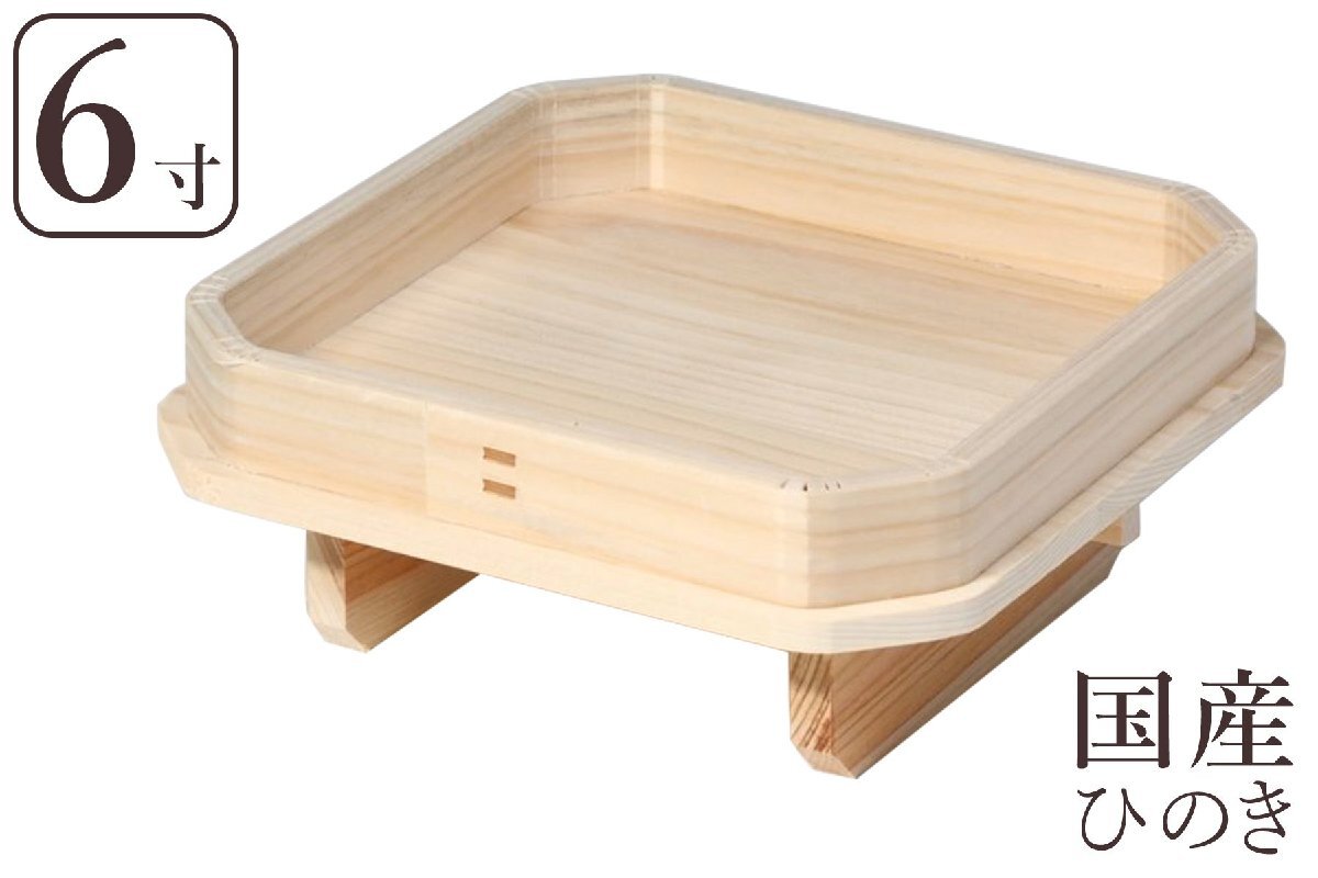 - 三宝 国産 ひのき 足打 6寸 神棚 神具 三方 高級桧 お月見