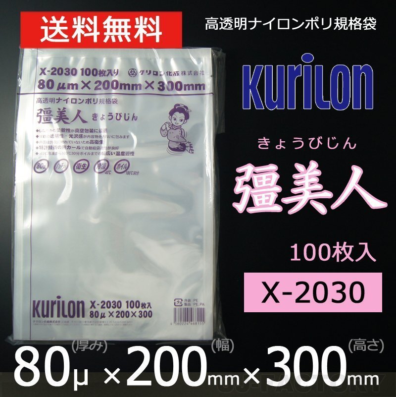> 【即納!送料無料】彊美人 80ミクロン X-2030 ナイロンポリ袋/真空袋 (厚み 80μ×幅 200×高さ 300mm)【100枚】★五層構造・三方規格袋