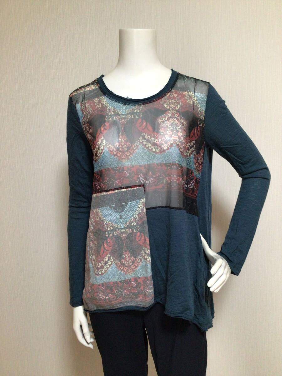- M1340/センソユニコ YCIA 柄物ウール長袖カットソー/38/ブルー