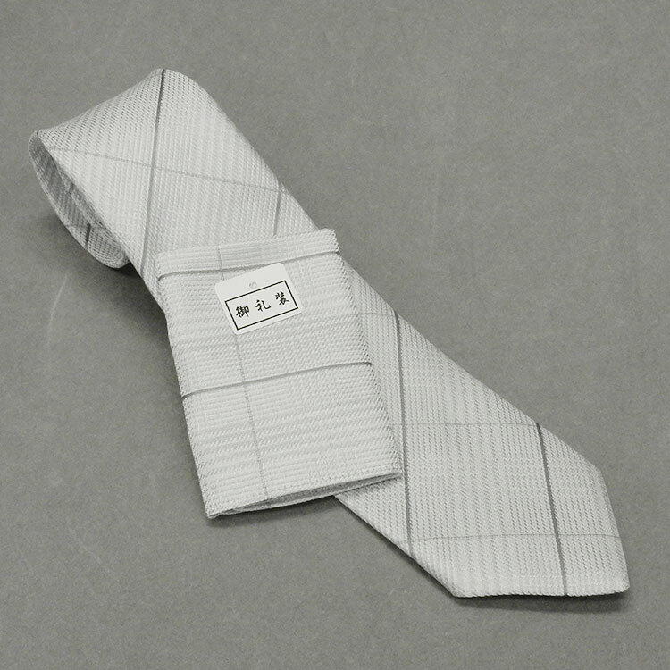 - フォーマルネクタイ チーフ付 シルバー シャドーチェック 甲州織 結婚式・披露宴 ポリエステル100% 日本製 メール便選択可能 NK03