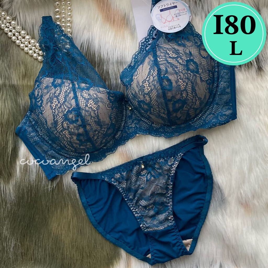 - 【I80/L ブルー系 上下セット】新品 ブラ&ショーツセット ブラジャー ショーツ パッド内蔵 レース セクシー グラマー Iカップ 大きいサイズ