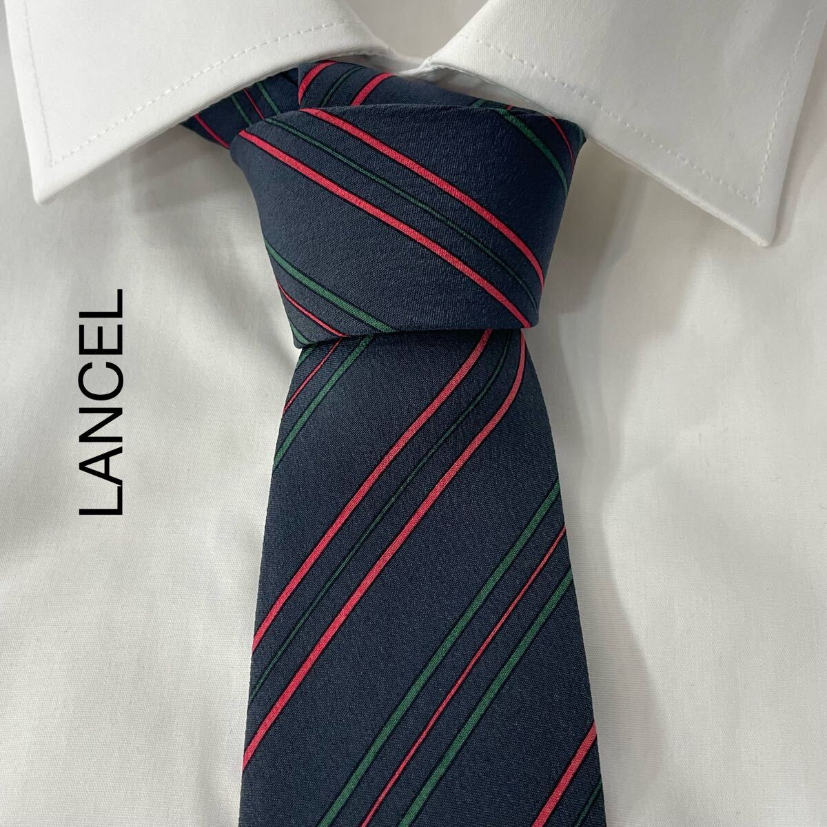 - LANCEL ランセル レジメンタル ストライプ デザイン シルク ネクタイ ネイビー TG237