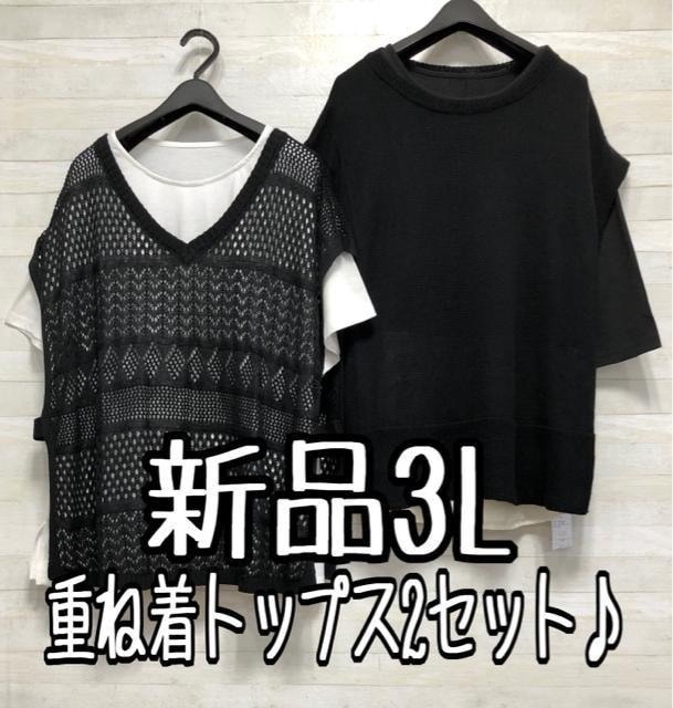 - 新品☆3L♪ベスト重ね着トップス2セットまとめて♪透かし編みも☆p493