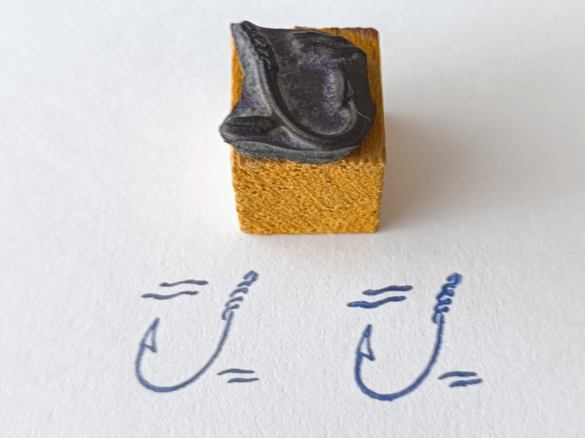 - ミニミニ 釣り針 魚を釣る 道具 海 川 フランス アンティーク スタンプ ヴィンテージ ハンコ イラスト 素材 フレンチ レトロ