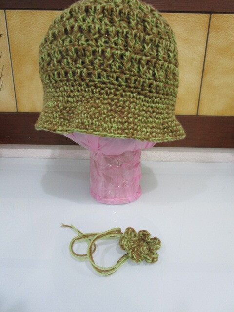 - ニット帽 ハンドメイド バケットハット 手編み 帽子 手作り コサージュ 秋 冬 ライム ブラウン 4