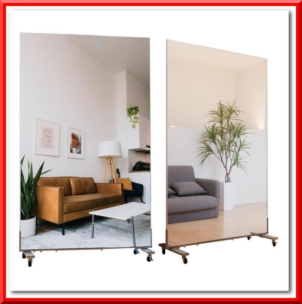 - 【新品】割れない鏡 スタンドミラー 全身鏡 幅80×高さ160cm スタンド付き(金)