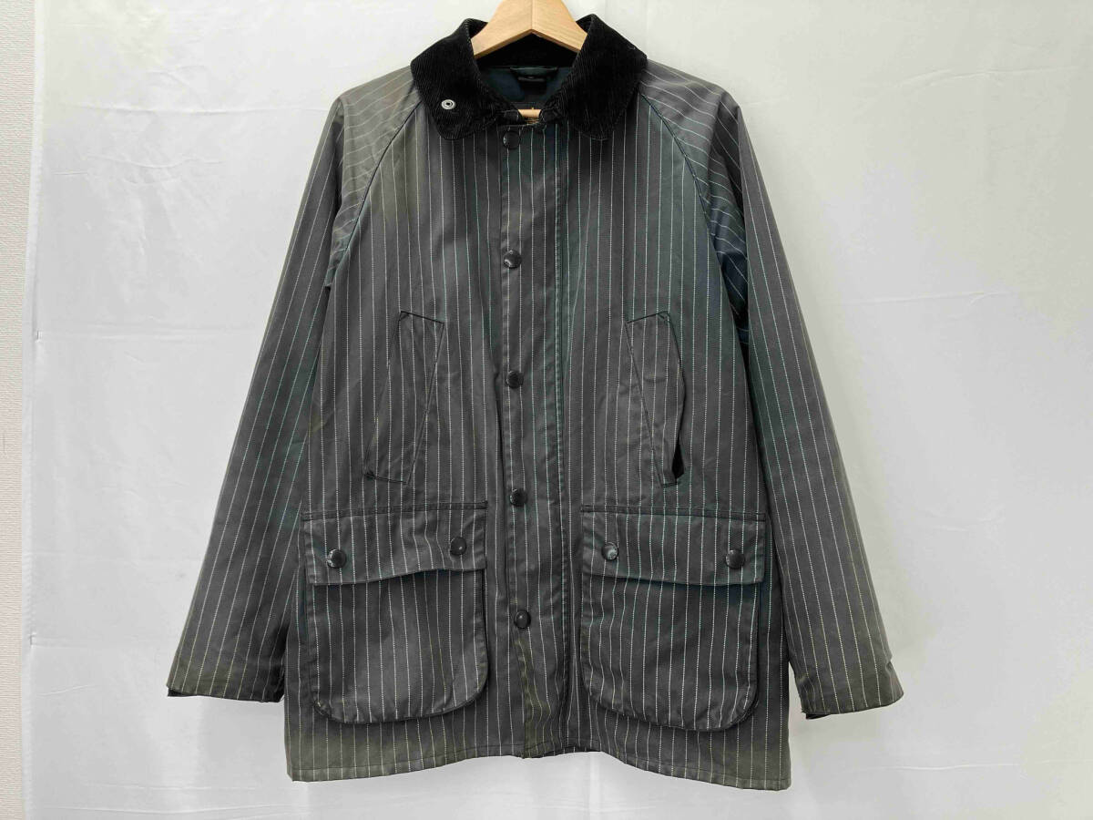 - ジャンク BARBOUR バブアー 1202227 ストライプ柄 オイルドジャケット サイズ36 メンズ ネイビー系カラーが変色しチャコールグレー系に
