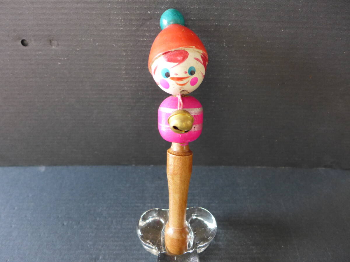 - ★ 時代物 昭和20年代頃 美品 木製彩色 可愛い人形笛 鈴付き 古玩具 レトロ アンティーク ★