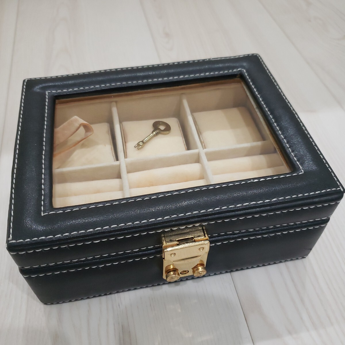 - ジュエリーボックス 宝石箱 レザー 昭和レトロ 使用感あり 鍵あり 宝石入れ 指輪