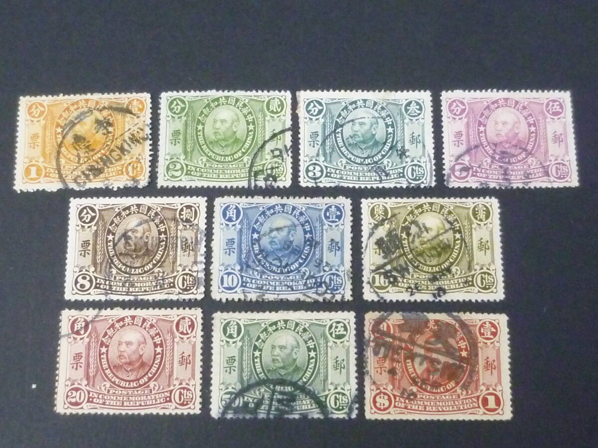 - 25 M №88 旧中国切手 1912年 JPS#226-35 共和紀念 1c~$1 計10種 使用済 ※説明欄必読