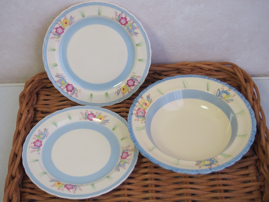 - アンティーク・イギリス製花柄ケーキプレート2枚&スーププレート1枚