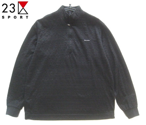 > 美品日本製!!23区スポーツ 23区SPORT*ロゴプリント ボーダー織り柄立ち襟ハーフジップカットソー 4 L 黒 GOLF ゴルフ