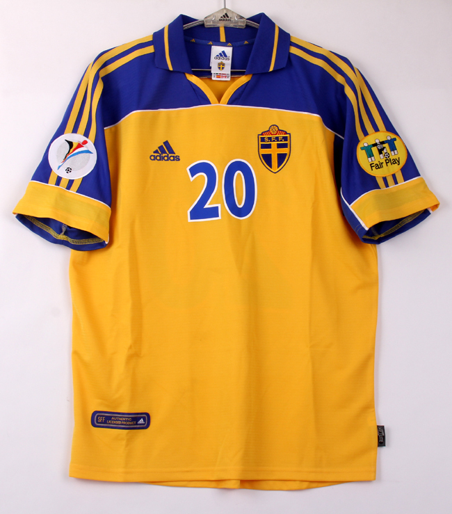 > ユーロ00 スウェーデン SFF Sweden代表(H)#20 ヘンリク・ラーション LARSSON 半袖 adidas EURO 2000仕様 L