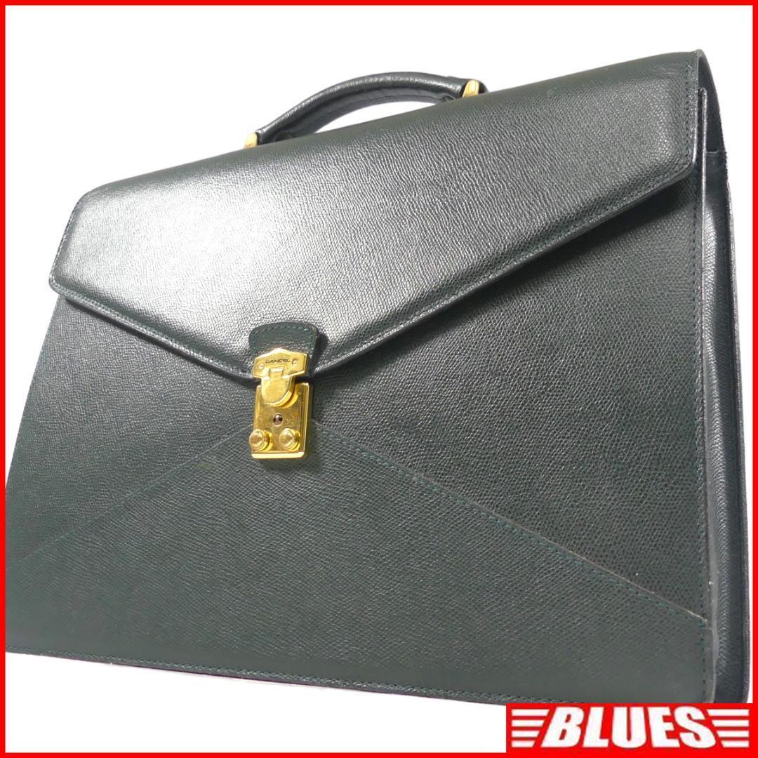 - 即決★フランス製 LANCEL★オールレザービジネスバッグ ランセル メンズ 緑 本革 ブリーフケース 本皮 通勤 カバン 出張 レディース