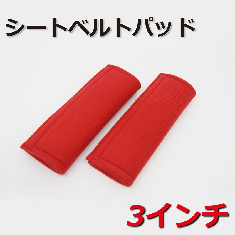 - 3インチシートベルト用 ショルダーパット レッド 2個セット シートベルトカバー クッション マジックテープ式