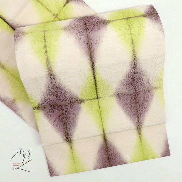 - 【名古屋帯】 お仕立て上がり 『桐生絞り』 九寸名古屋帯 菱模様 正絹 着物 nNS5-15