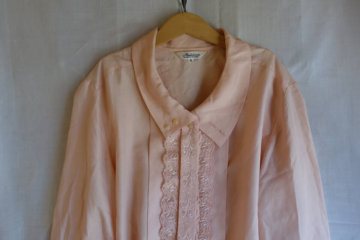 - ○[70s80s90s vintage ヴィンテージ ピンク 刺繍 スカラップ レトロシャツ]USED古着 昭和レトロ・モダン