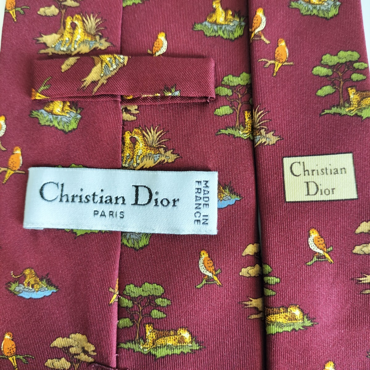 - Christian Dior(クリスチャンディオール)ワインレッド色んな動物ネクタイ
