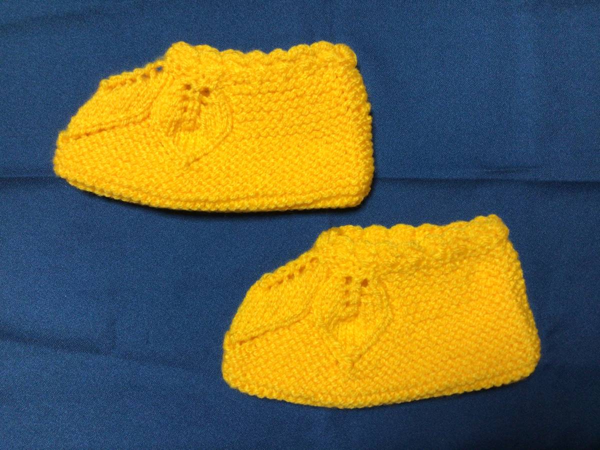 - 【編12】手編みルームシューズ(黄色系) ハンドメイド 毛糸 ルームソックス 靴下カバー フットカバー 部屋履き 室内履き