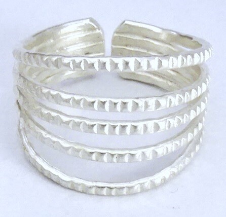 - ◆カレンシルバー リング 高純度 5連◆約19号◆カレン族・karen silver 指輪【24tr18b】