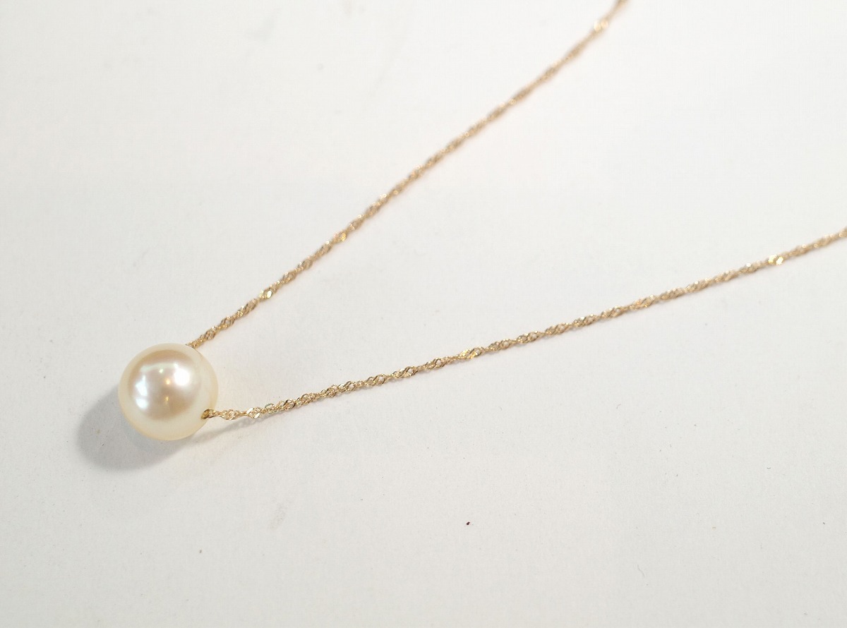 - 未使用 K18 一粒 パールネックレス 8.3mm YG イエローゴールド 真珠