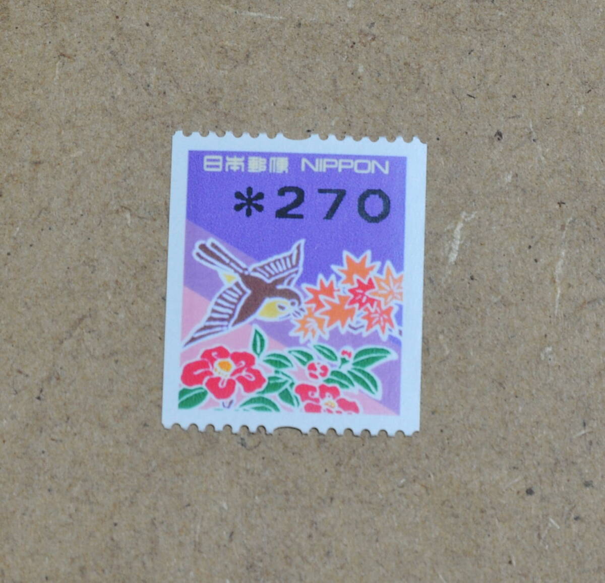 - 額面印字コイル切手・270円・スズメとモミジとツバキ・未使用