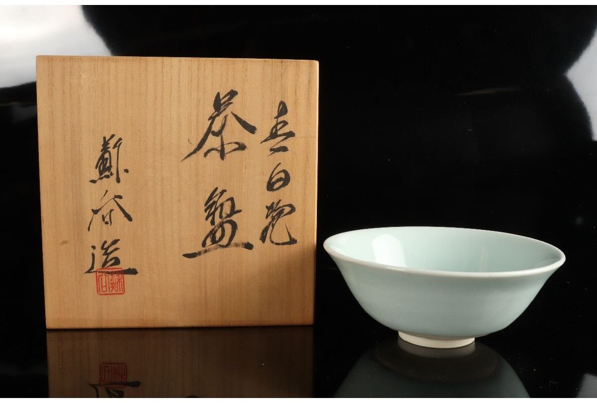 - [ギャラ藤]八田蘇谷/青白瓷茶碗/共箱/B-1038 (検索)骨董/茶器/茶碗/急須/茶托/置物/茶道具/割烹/抹茶
