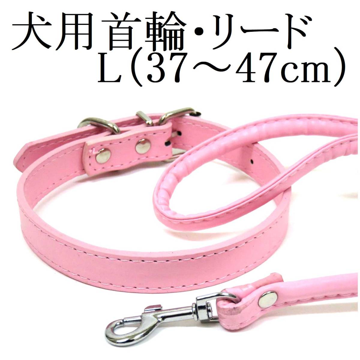 - ライトピンク L 中型犬 犬用 首輪&リード セット 首回り37~47cm前後 幅2.3cm 薄ピンク リード120cm PUレザー シンプル カラー ペット用品