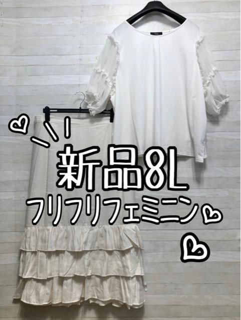- 新品☆8L♪白系フリフリかわいい♪トップス&ロングスカート☆f380