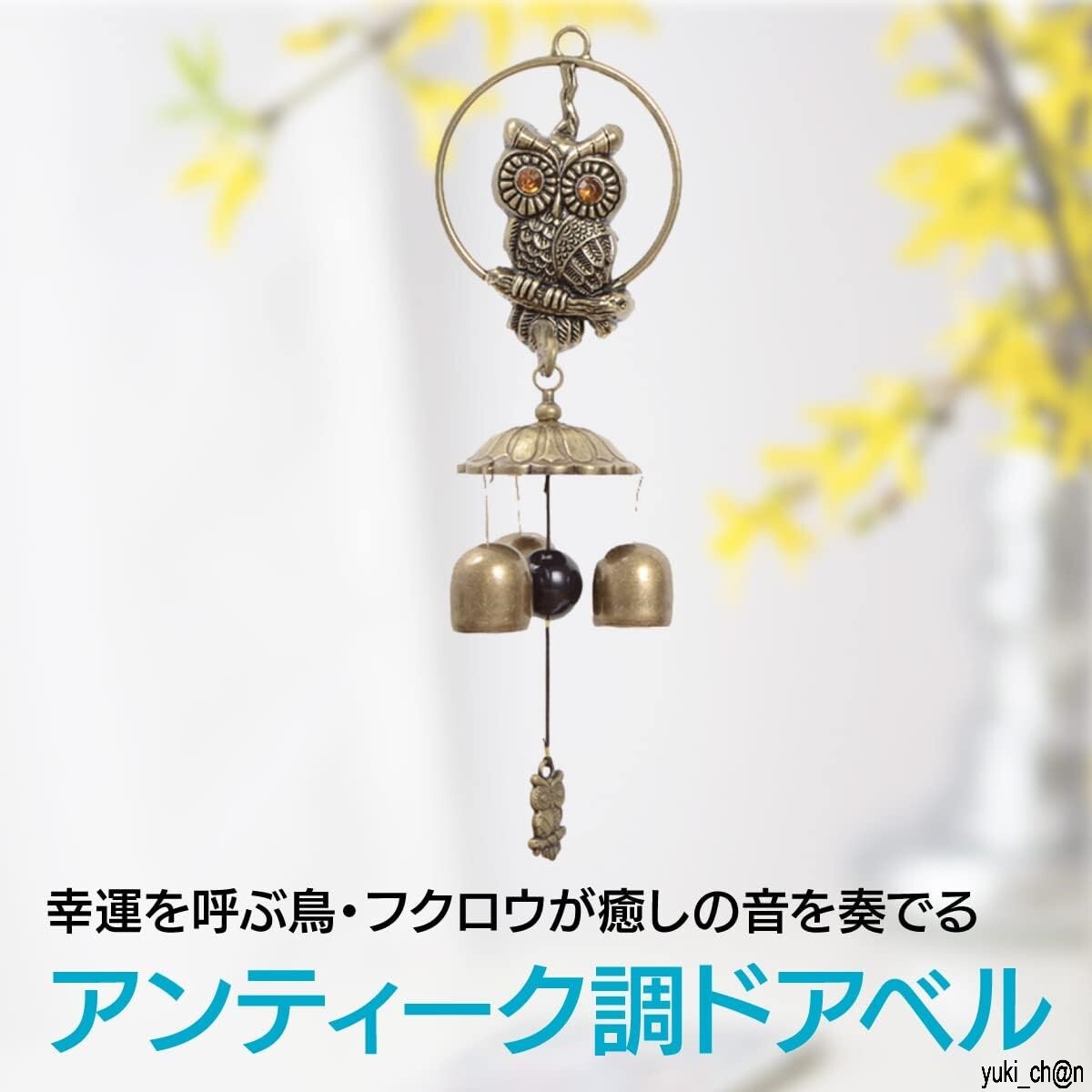 - ドアベル アンティーク調 ドアベル フクロウ ドアベル マグネット 磁石 タイプ ドアチャイム 呼び鈴 梟 不苦労