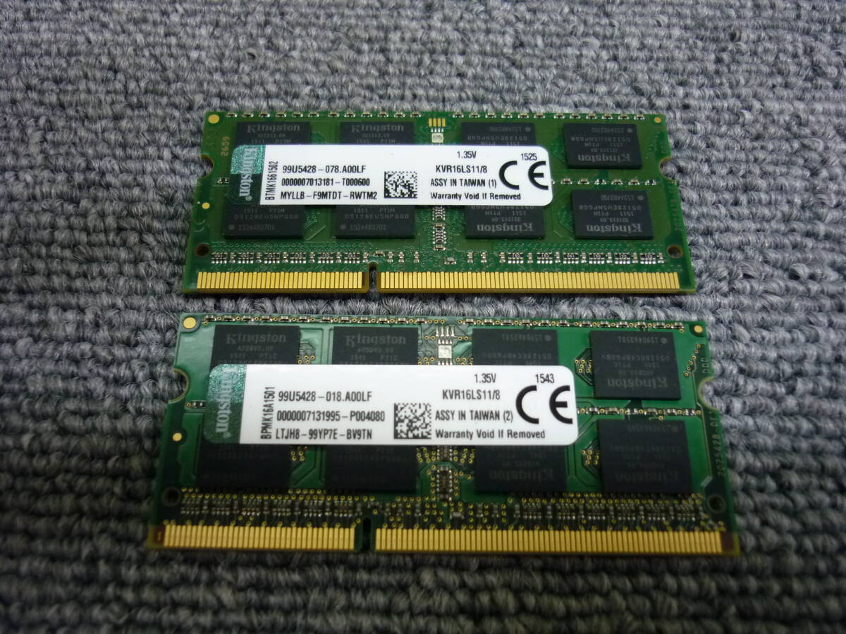 > ■[返品返金可] Kingston ノート用メモリ基板 PC3L-12800 8GB2枚 動作未確認 中古品 クリックポスト発送■