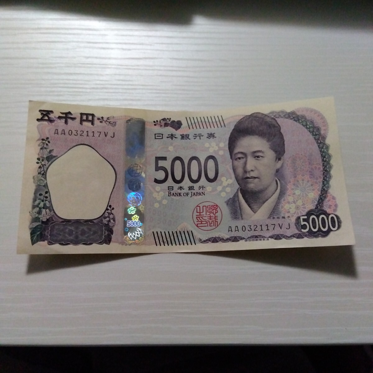 - 新五千円札 AA-VJ券 ダブルA 津田梅子 流通品 少し折れあり AA032117VJ