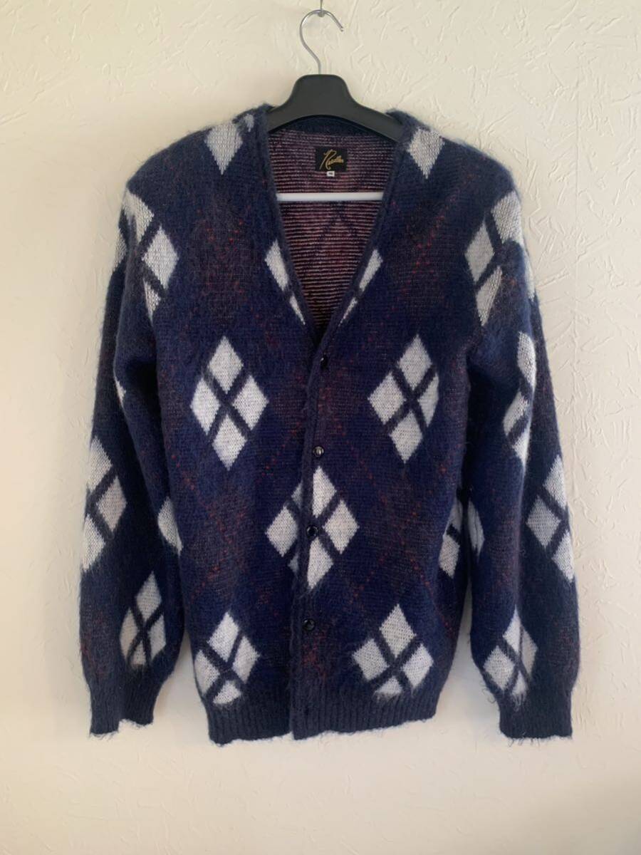 - needles ニードルス モヘアカーディガンM美品 ネペンテス ネイビーダイヤ柄 エンジニアードガーメンツ