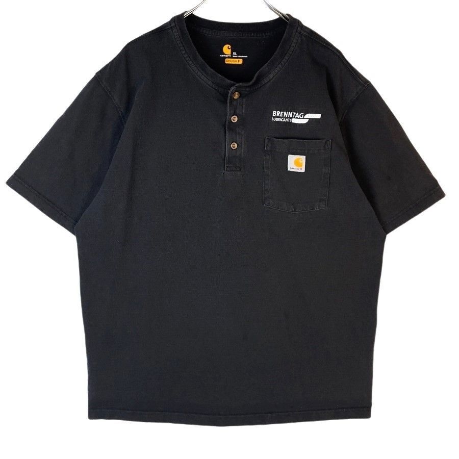 - カーハートCarhartt半袖ヘンリーネックTシャツ胸ポケT企業ロゴ刺繍ロゴタグ黒ブラックフェードORIGINALFITオリジナルフィットvintage40621