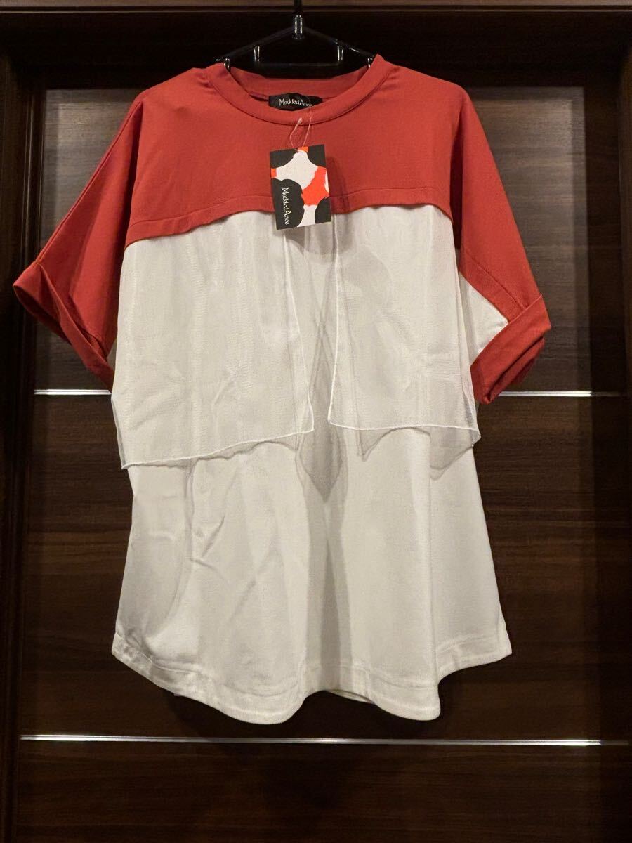 - 新品 モーデッドアンス QVC デザインTシャツ バイカラー ゆったり Tシャツ カットソー S レース