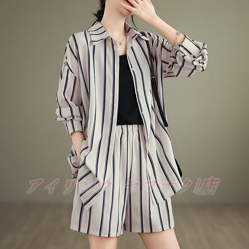- ☆新品人気 オシャレ 上下セット トップス ショートパンツ 2点セット ボーダー柄 かわいい 普段着 二次会 ゆったり
