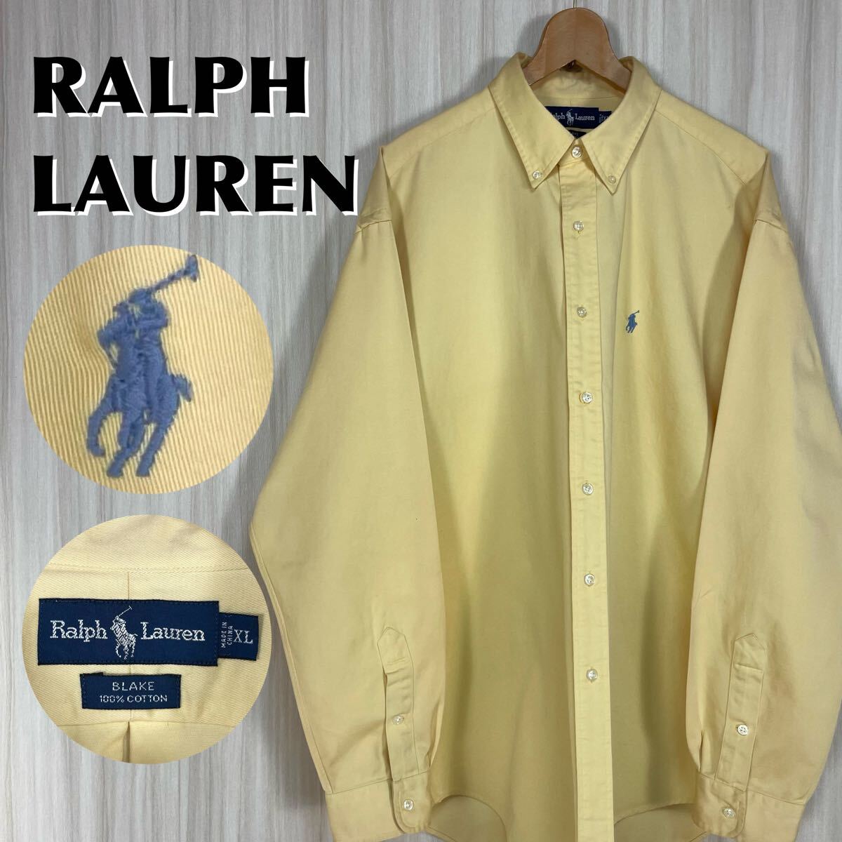 > Ralph Lauren ラルフローレン ワンポイント 刺繍ポニー ボタンダウン 長袖シャツ BDシャツ XL表記 イエロー 黄色 アメカジ 古着