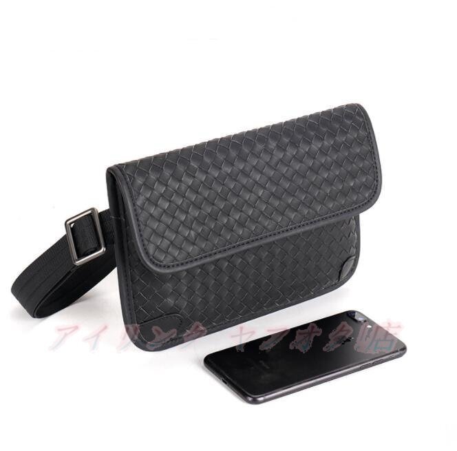 - ☆新品上質ウエストバッグ メンズ ウエストポーチ ヒップバッグ ボディバッグ 2WAY 斜め掛け 牛革 軽量 編み込み レデイ 黒
