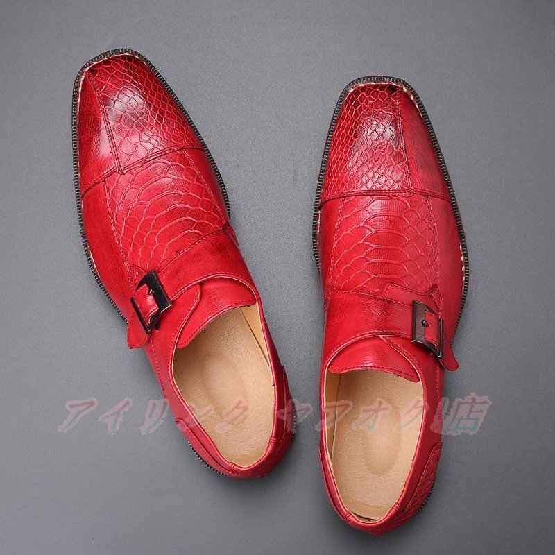 - ☆新品ビジネスシューズ メンズ イギリス風 PUレザー レザーシューズ モンクストラップ 切替 鰐柄 革靴 24.5cm~29cm 赤系