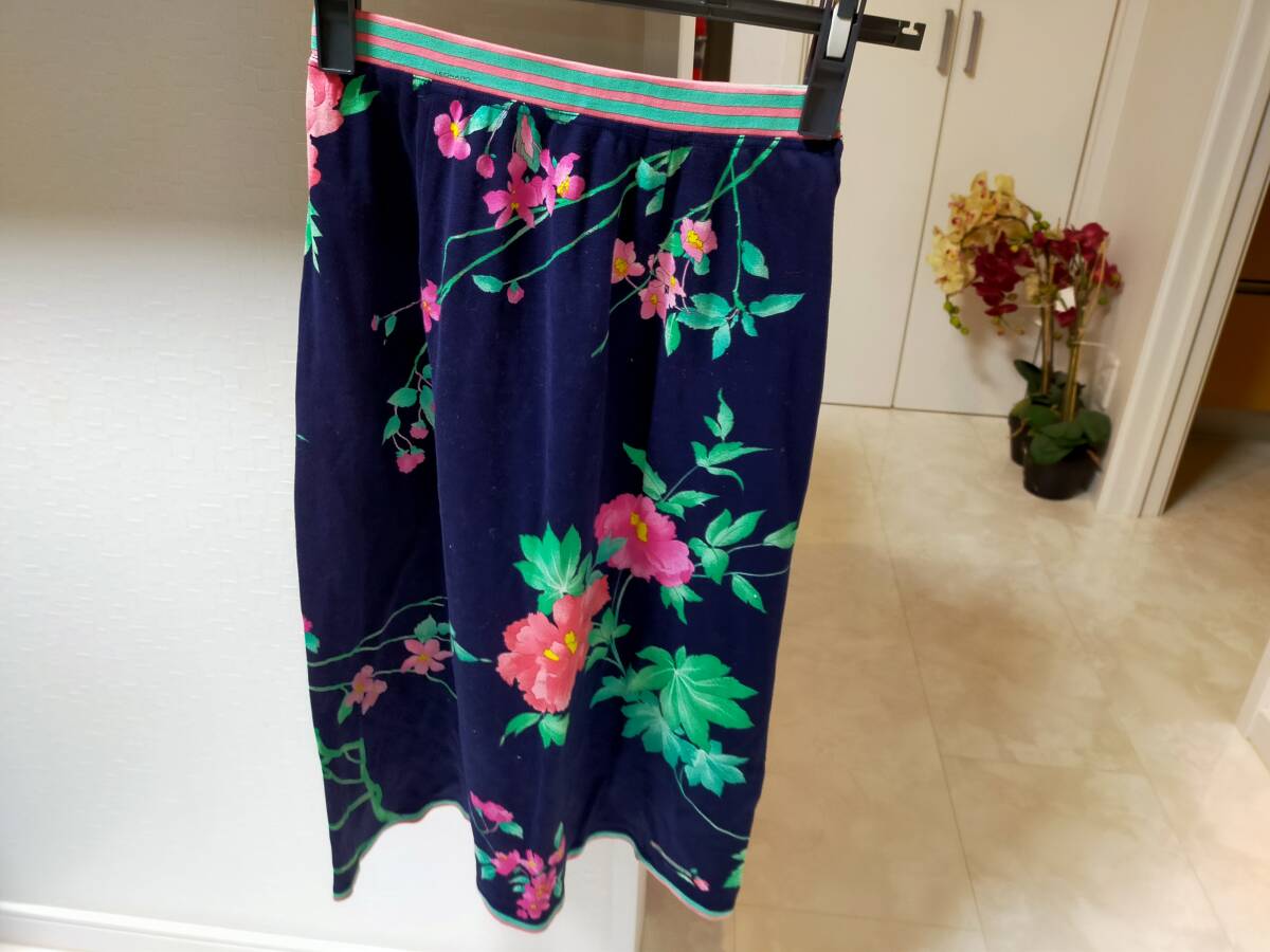 - レオナール フラワープリント スカート サイドスリット S