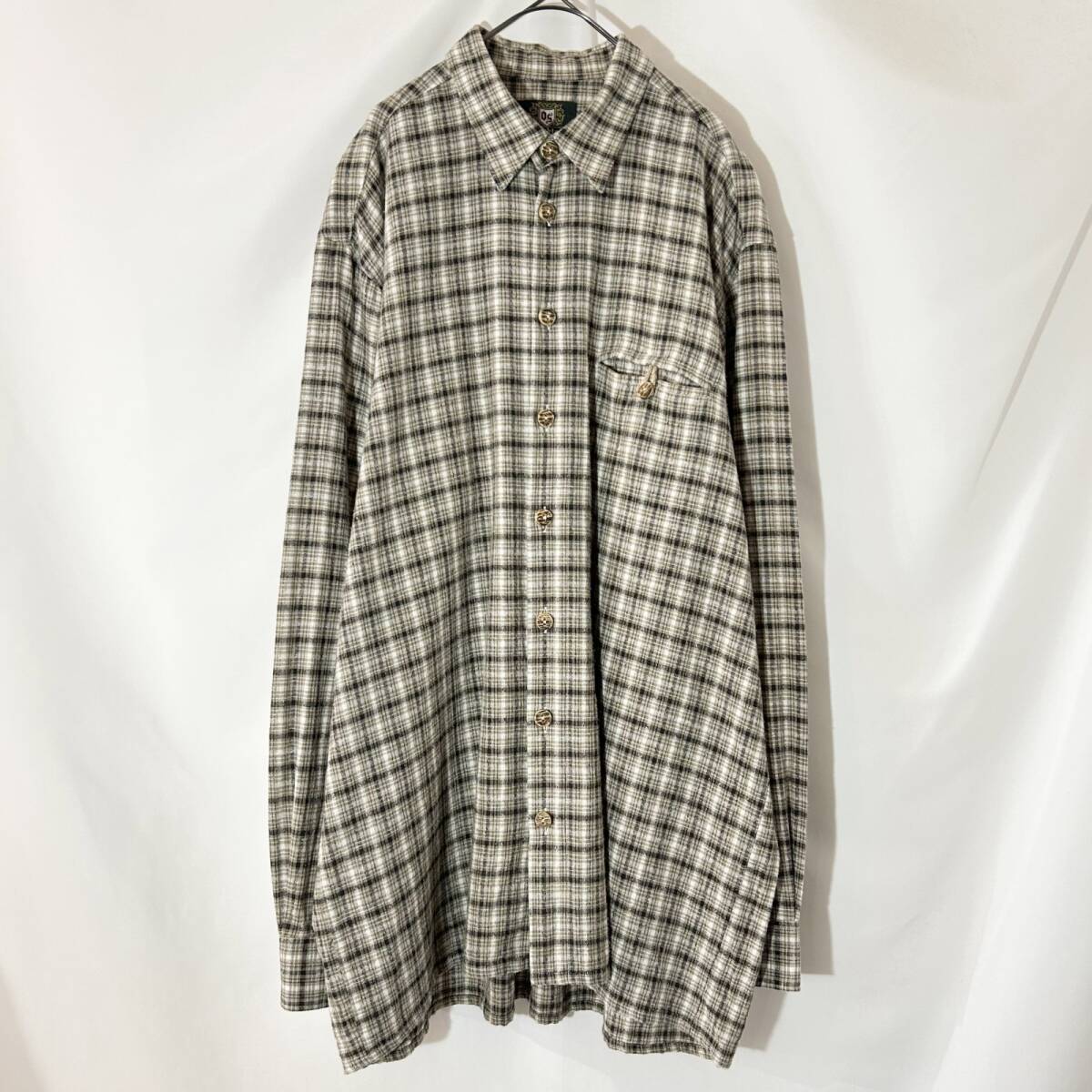> L ユーロ古着 チロルシャツ チロリアンシャツ チェック柄 長袖シャツ シンプル 民族衣装 ナチュラル コットン アースカラー ベージュ