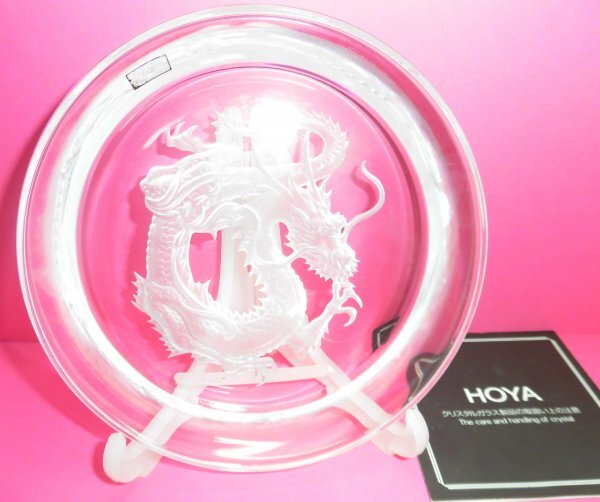 - JH4★HOYA CRYSTAL★ホヤ クリスタルガラス★龍★置物★オブジェ★レリーフ皿★
